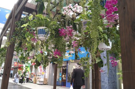 上通アーケード内に、花と香りの心地良い空間を演出します!